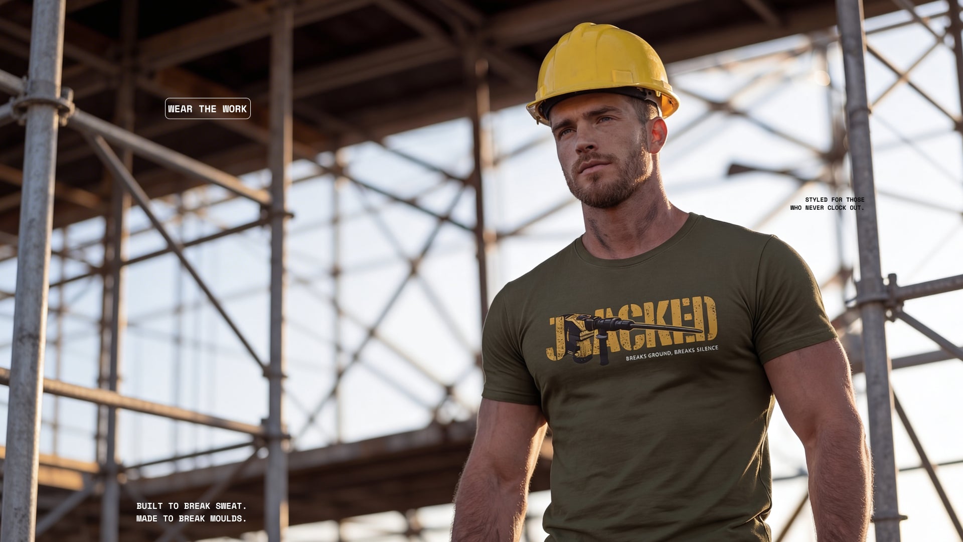 The Men at Work Collection by Deployed captures the raw energy of earthmovers and heavy machines, reflecting the command and primal force of industrial power. The designs bring that force into form for the men who admire their might.