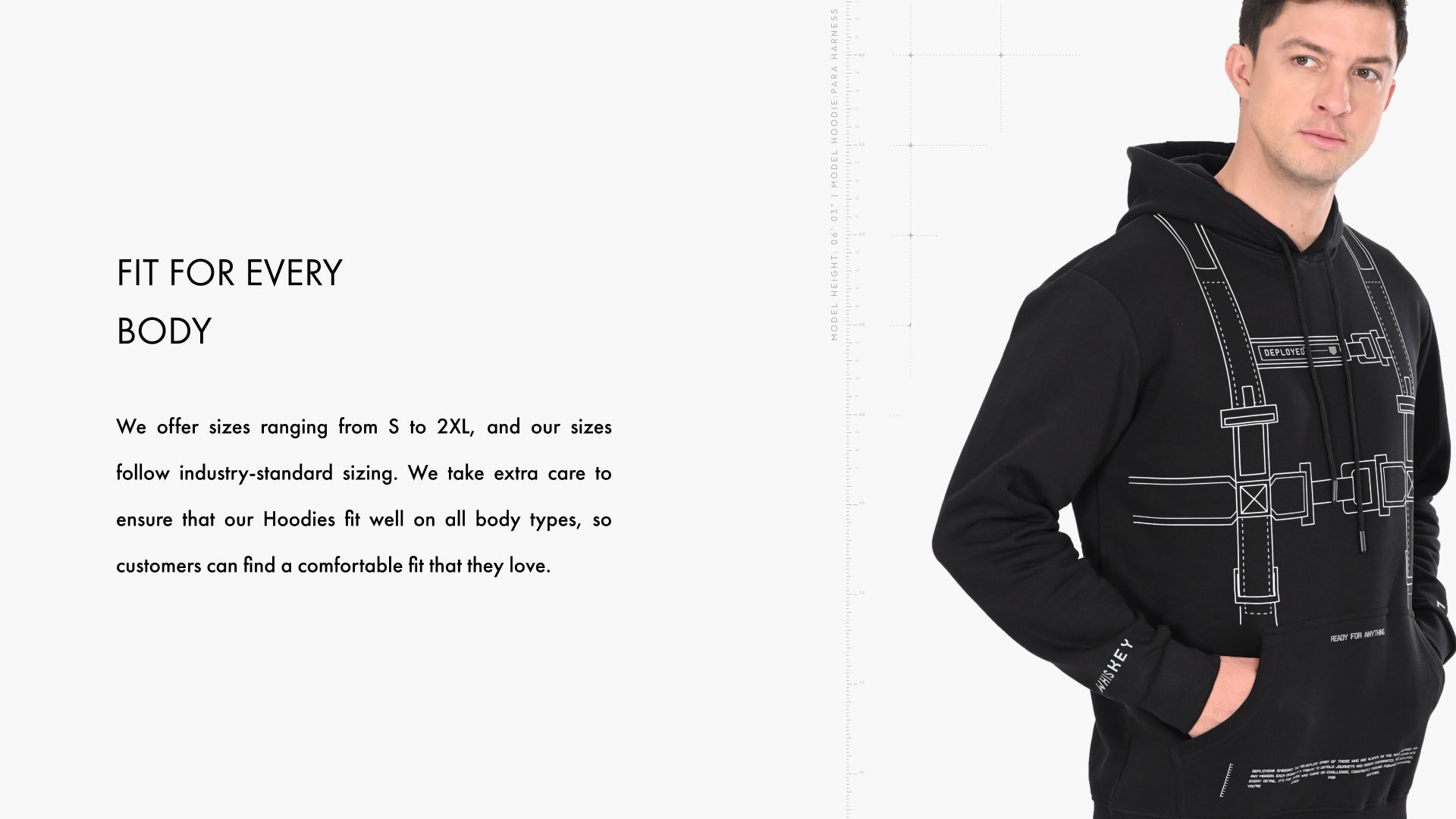 At Deployed, we prioritize the perfect fit. Our apparel is crafted to suit every body, with sizes ranging from S to 5XL, ensuring comfort and style for all.